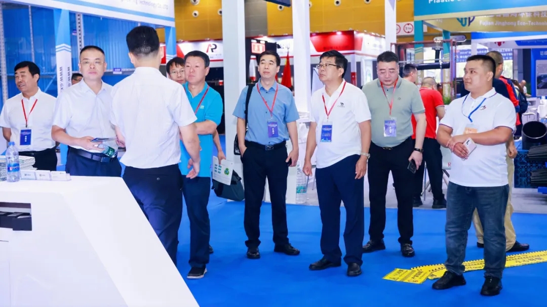 中國模板腳手架協會理事長陸貽杰、秘書長高峰走訪集團展位,與鑫政營銷團隊就行業發展、協企合作、市場趨勢進行了深入交談。