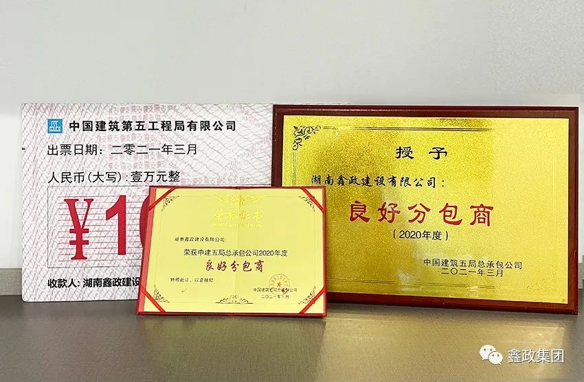 瀏覽次數:1517喜訊連連捷報傳。近日,在中建五局總承包公司2021年分包(供)商答謝會暨優秀分包(供)商表彰會上,集團下屬子公司湖南鑫政鋁業科技有限公司與湖南鑫政建設有限公司分別喜獲2020年度“優秀分供商”與“良好分包商”獎項。